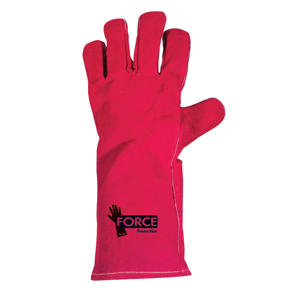 Guante fabricado en Cuero Descarne color rojo, costuras reforzadas de algodón, puño largo 13″, forro interior textil, talla estándar. Certficado acorde normas Chilenas vigentes por organismo autorizado por el ISP